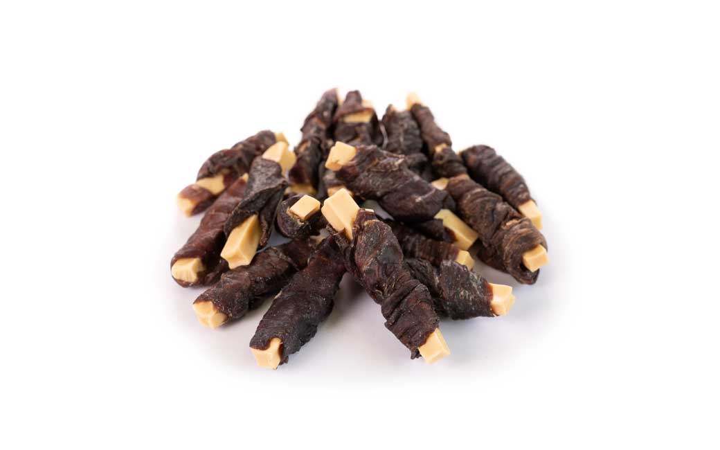 Using highly palatable horse meat paired with rich, pure cheese strips, even picky dogs will love it. Cheese is rich in calcium, while horse meat is low in fat and high in protein, making this a nutritious treat. Fresh horse meat from Japan is hand-rolled with cheese strips, making each bite-sized piece perfect for training treats. No added preservatives or additives.