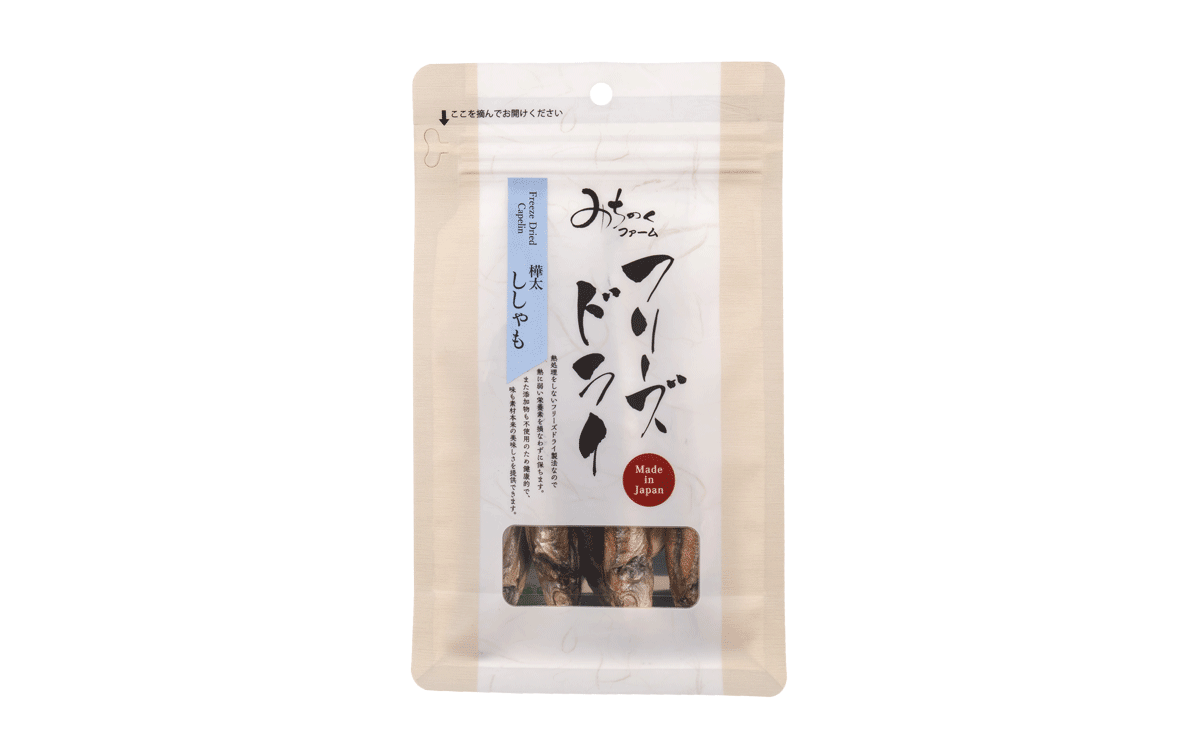 Shishamo is a slender fish named after its willow-leaf shape. Its unique flavor and rich roe have made it a beloved ingredient in Japanese cuisine. Using advanced freeze-drying technology, the whole fish—including the head, body, and bones—is processed into a melt-in-the-mouth texture while preserving high-quality protein, DHA, iron, calcium, vitamin B2, and vitamin E. Female fish contain abundant roe that offers a deeply savory taste that intensifies with chewing. Highly palatable and 100% additive-free, it’s a healthy, delicious choice.